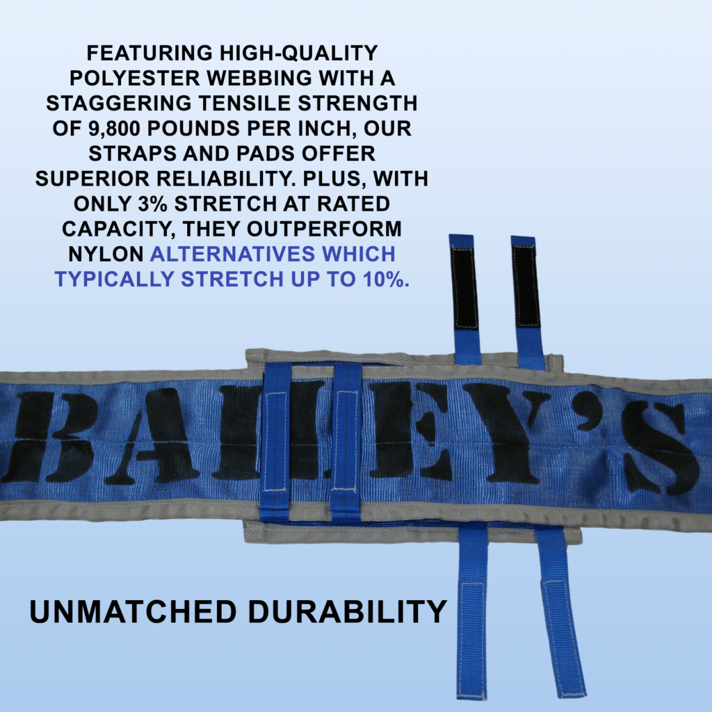 Bailey’s Blue™ Heavy Recovery Sling & Wear Pads When our customers open their toolboxes and reach for Bailey’s Blue products, they’re reaching for the finest American-made synthetic rigging on the planet! Our Bailey’s Blue™ Heavy Recovery Straps and wear pads are no exception – the webbing is proudly made in the USA and sewn right…