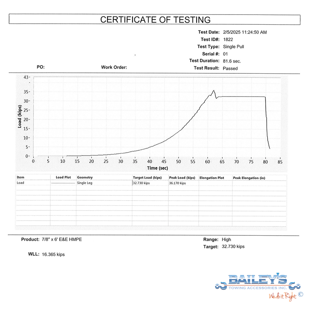 At Bailey’s, we take a different approach. The majority of Bailey’s synthetic slings are individually proof tested. That means when you put one to work, you can be confident it has already proven its strength and reliability.