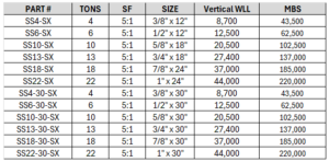 | Soft Shackle Sizes: | 4 Ton PN: SS4-SX, 4 Ton 30" PN: SS4-30-SX, 6 Ton PN: SS6-SX, 6 Ton 30" PN: SS6-30-SX, 10 Ton PN: SS10-SX, 10 Ton 30" PN: SS10-30-SX, 13 Ton PN: SS13-SX, 13 Ton 30" PN: SS13-30-SX, 18 Ton PN: SS18-SX, 18 Ton 30" PN: SS18-30-SX, 22 Ton PN: SS22-SX, 22 Ton 30" PN: SS22-30-SX |