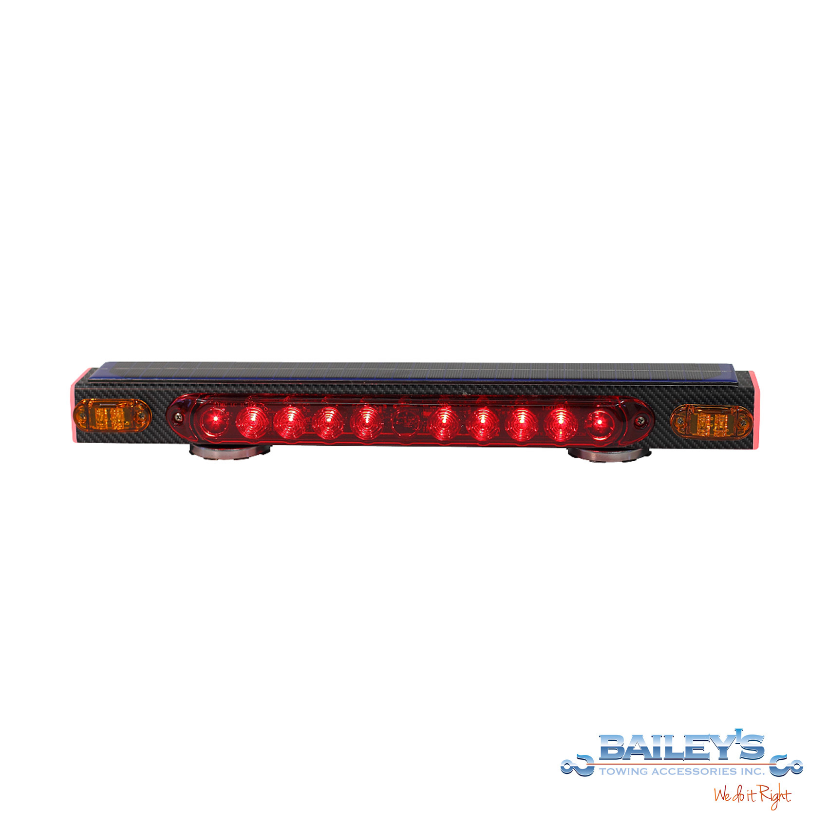 The 21″ wireless magnetic taillight system provides stop, tail, and turn in a compact low profile single unit. This system features a solar panel for supplemental power increasing battery life and reducing the need to charge the unit from a charge cord. Includes a transmitter of choice, charge cord, and a full lifetime warranty (including the battery). Range 1000 feet.